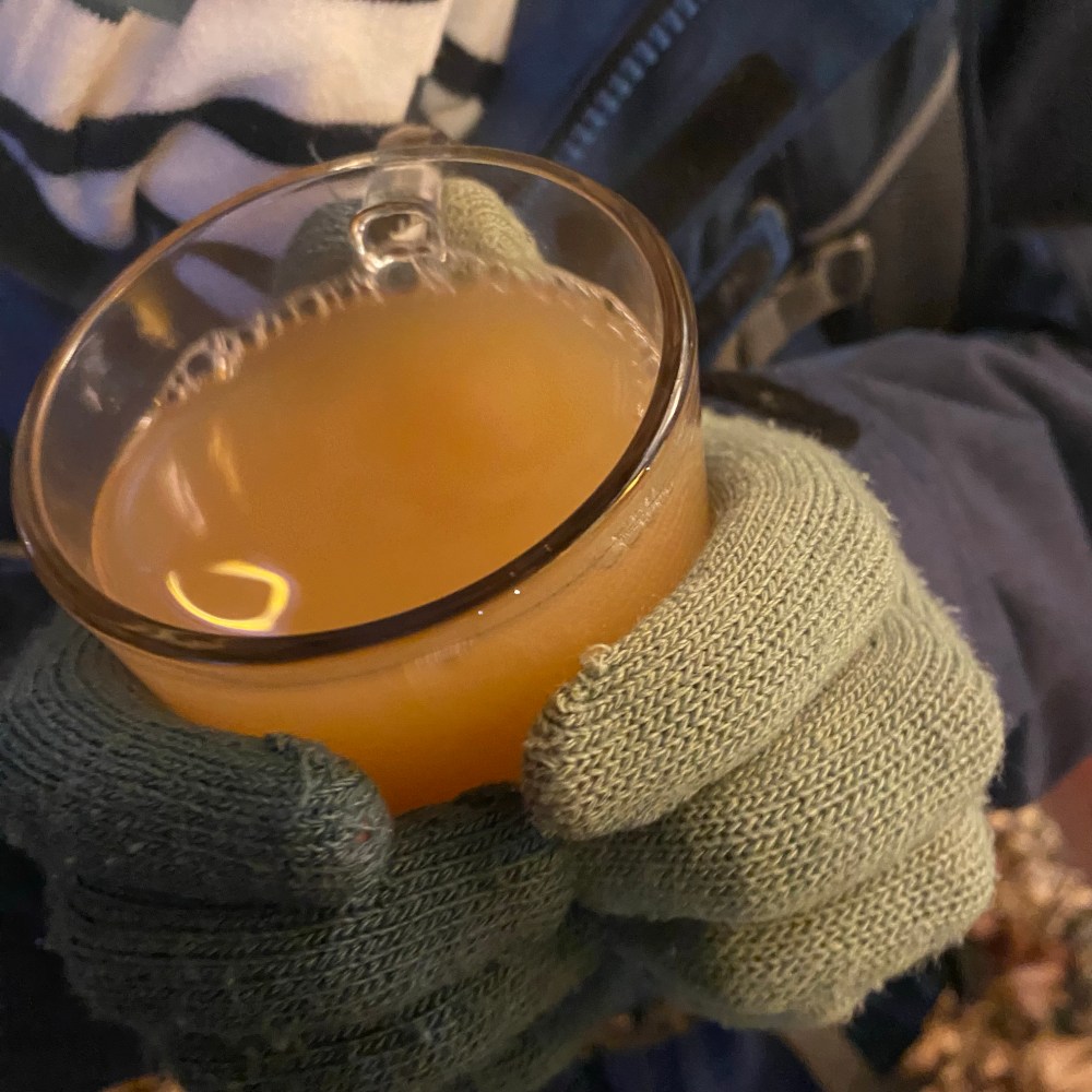 [Kurz darauf. BB:] „Das Schönste am Weihnachtsmarkt finde ich, wenn man so mit beiden Händen das Glas mit dem heißen Apfelpunsch festhält! Das ist so richtig Weihnachtsmarkt, wie er sein soll!“
