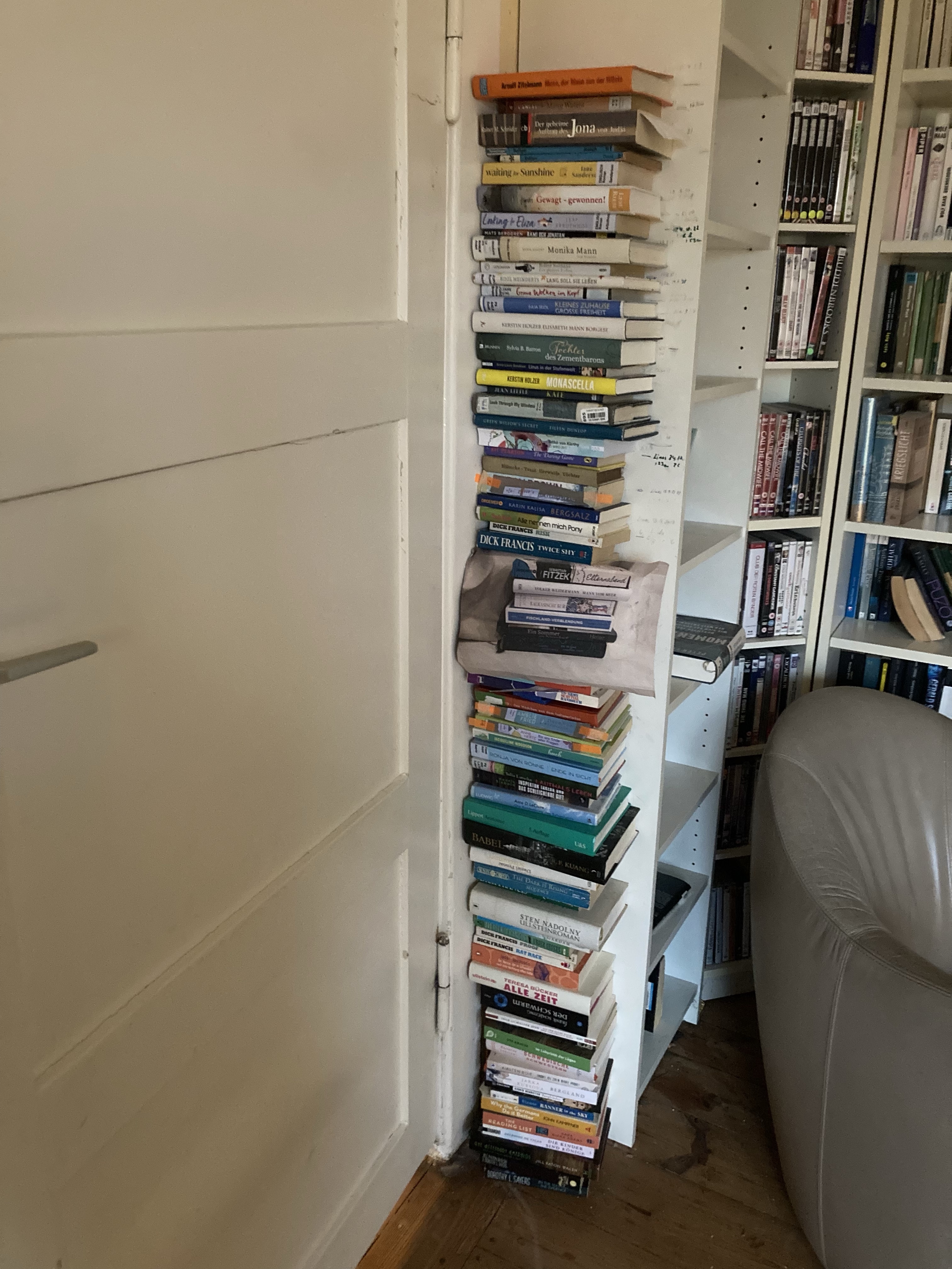 [folienstern:] “Zeit, meinen Bücherstapel von der “read your height”-Challenge für meine Freundin abzubauen … Und den neuen anzufangen. Teil 2 der Challenge: bis zu ihrem ersten Todestag im März einen zweiten Stapel schaffen!”