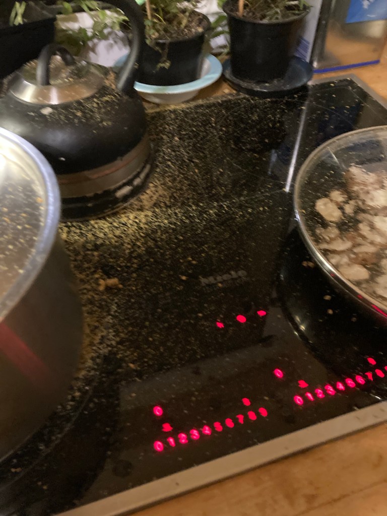 [kneteeis:] „Erinnere mich nächstes Mal daran, dass es keine gute Idee ist, Pizza, Brot und Panettone gleichzeitig zu machen. Der Panettone muss jetzt noch so lange gehen, dass ich bestimmt erst um Mitternacht backen kann.“