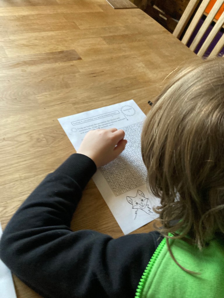 [folienstern:] “Kleiner Junge, eine Runde Lernwörter jetzt!”
