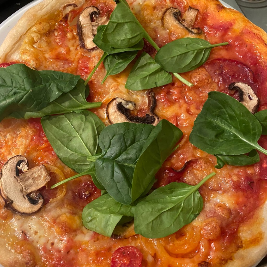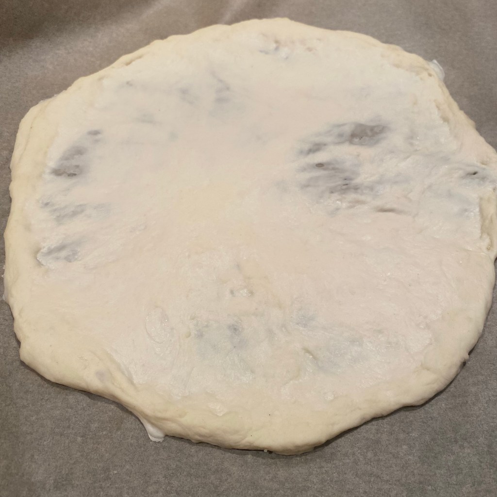 [kneteeis:] „Alles klar. Und erinnere mich nächstes Mal bitte auch daran, dass ich die Pizzaballen mit viel mehr Abstand in die Form legen muss. Wenn sie so zusammen kleben, wir der Teig nachher gar nicht schön.“