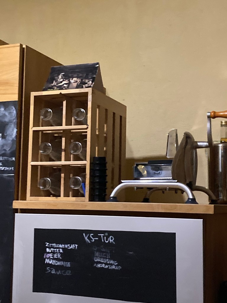 [K2:] “Jetzt könnten wir da oben noch überm Backofen aufräumen.”