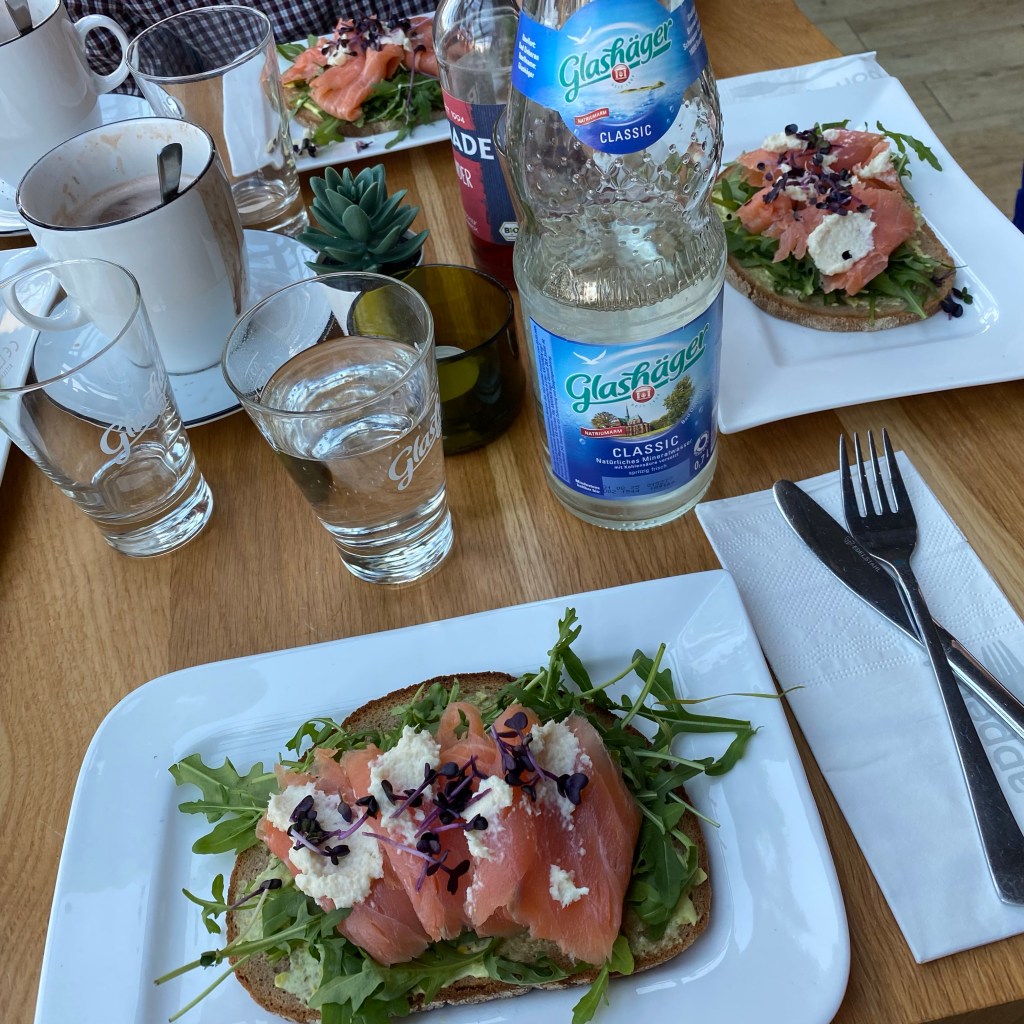 [Noch später in Wieck. GM:] „Also, ich nehme die Räucherlachsstulle.“