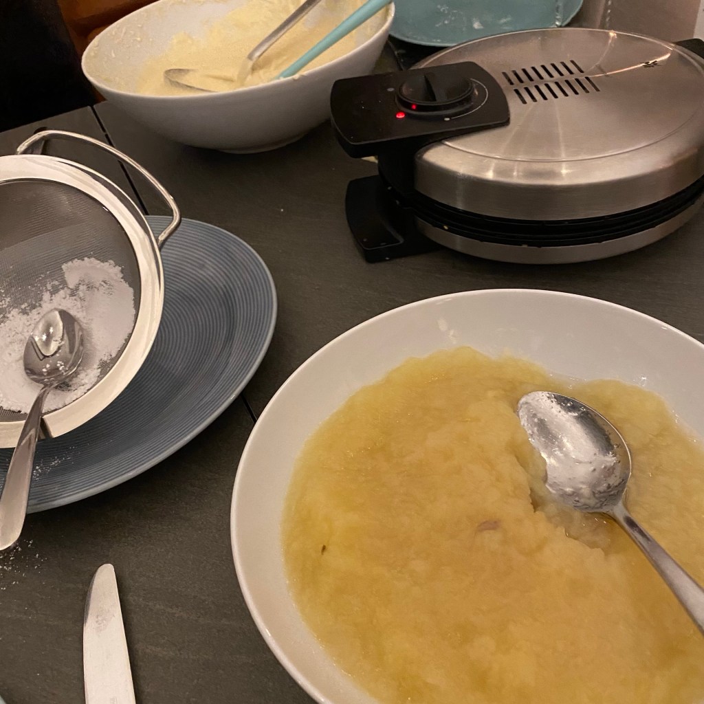 [kneteeis:] „Mit Apfelmus. Das habe ich vorhin schon gekocht.“
