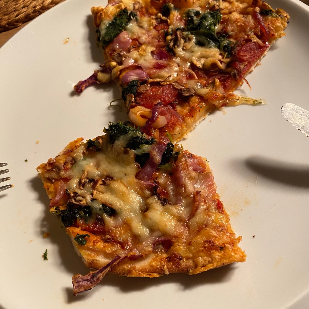 [kneteeis:] „Essen wir die restliche Pizza auf?“