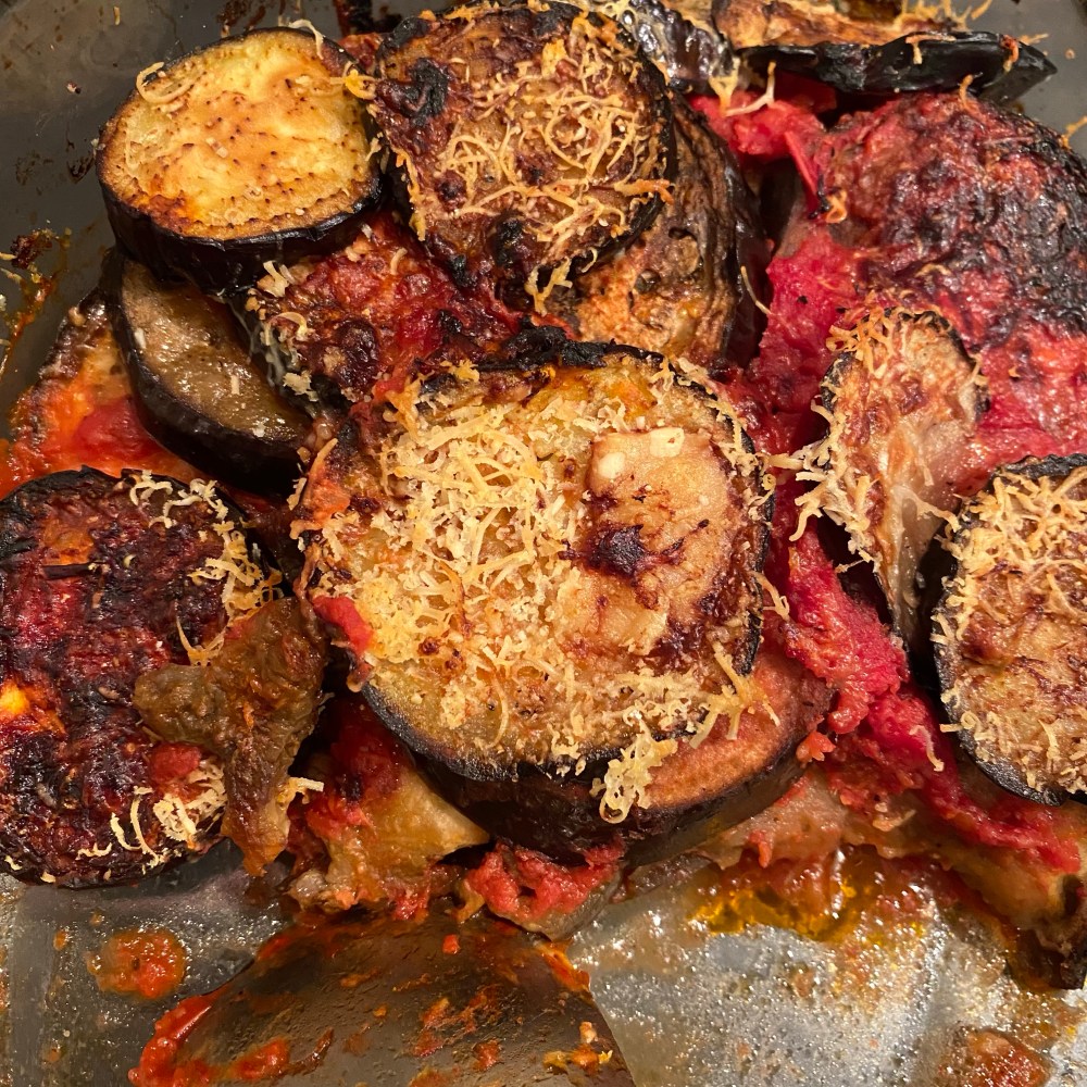 [Etwas später. kneteeis:] „Jetzt mache ich mir noch überbackene Auberginen. Die mag der große Junge ja nicht so – da nutze ich es aus, dass er nicht da ist!“
