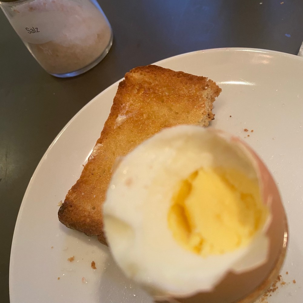 [kneteeis:] „Ich mache mir ein Ei zum Frühstück. Gut, dass ich den Ein-Ei-Eierkocher habe, den mir der große Junge zu Weihnachten geschenkt hat!“