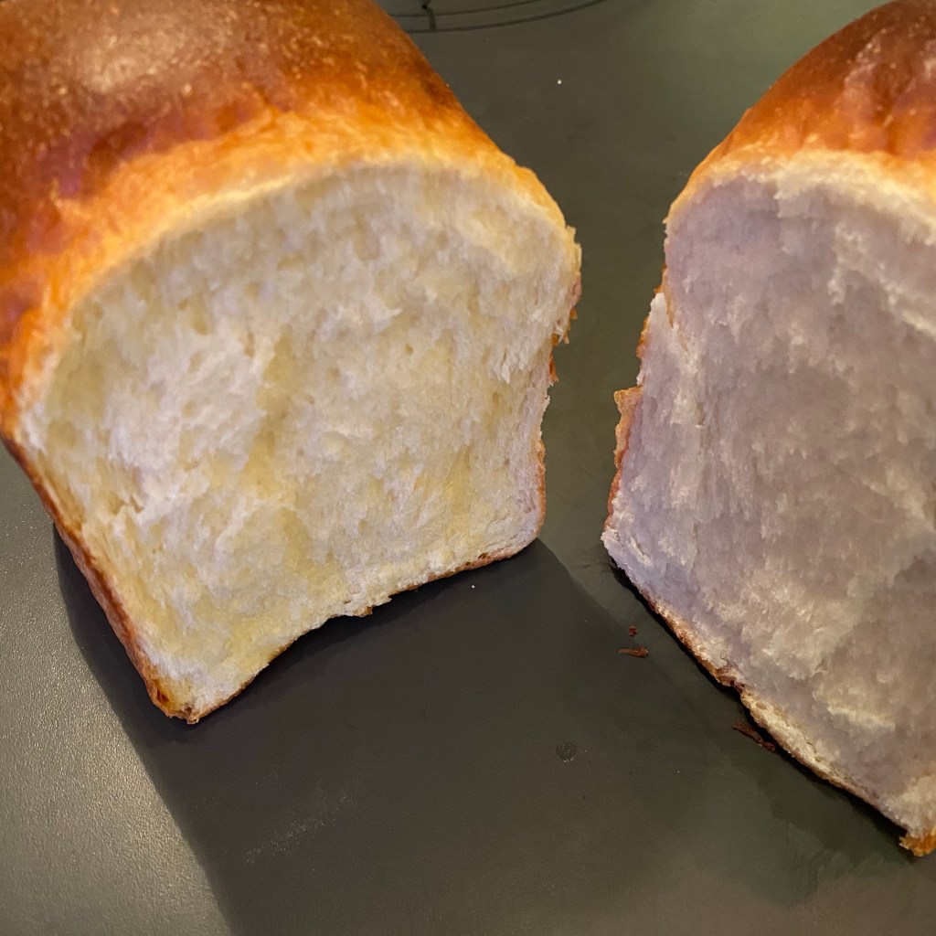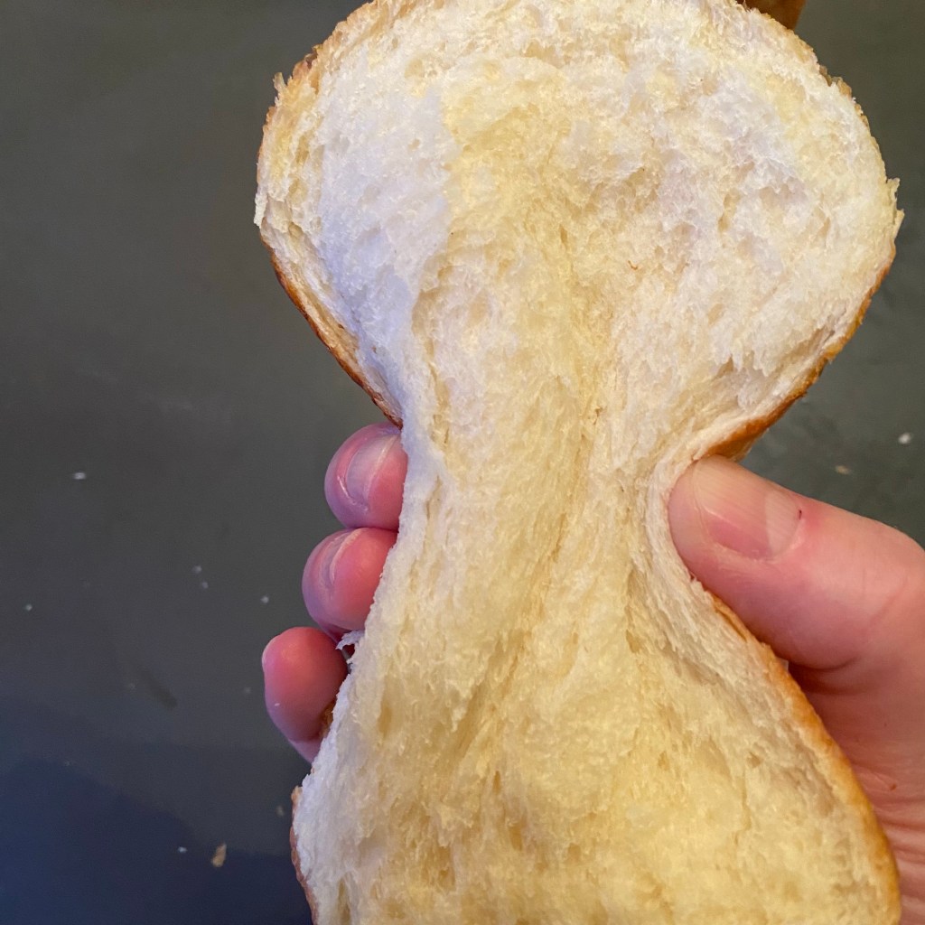 [kneteeis:] „So, jetzt bin ich gespannt, wie die Krume von dem Shokupan geworden ist… – Hmmm, supersoft! Klasse!“