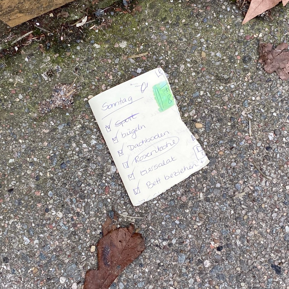 [kneteeis:] „Ach, guck‘ mal: Da hat jemand seine ToDo-Liste verloren. Ich mache mal ein Foto, falls sie jemand sucht…“