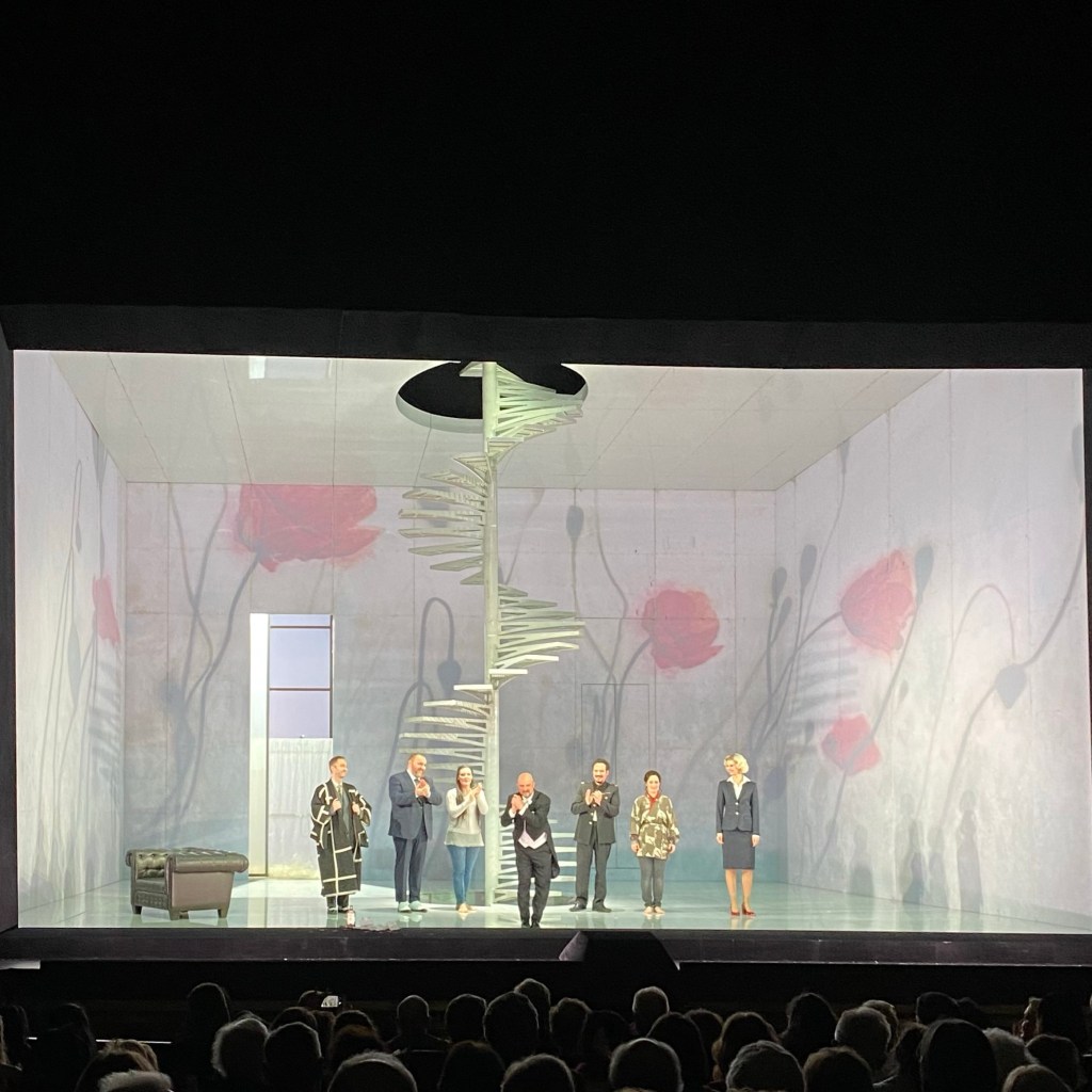 [Etwas später. kneteeis:] „Das Programmheft ist ja auch richtig unterhaltsam: ‚Das Duett verdämmert […] in der skeptischen Dissonanz eines unaufgelösten Quintsextakkordes‘. Darauf muss man erstmal kommen…“