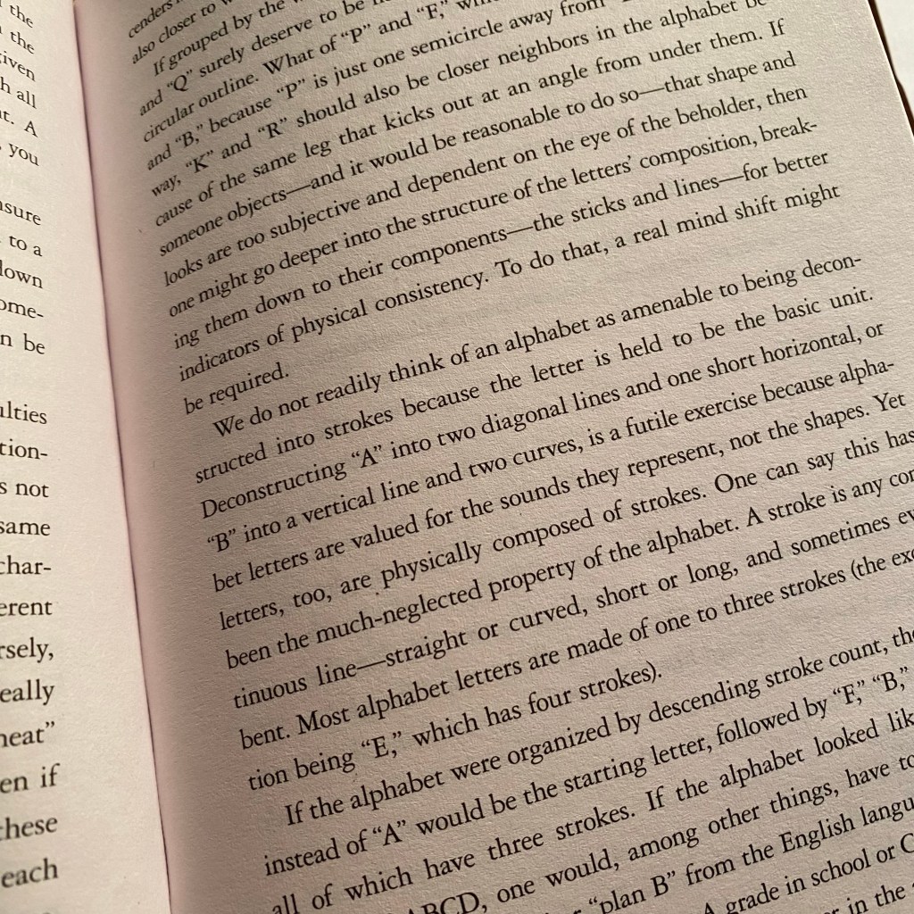 [kneteeis:] „Das ist auch ein spannende Buch über die Schwierigkeiten, die chinesische Sprache und Schrift in internationale Systeme einzubinden, weil die alle auf alphabetischen Schriften und Sprachen aufgebaut sind. Am coolsten finde ich ja das Gedankenspiel, was wäre, wenn man unser Alphabet nach Stricharten sortieren würde…“