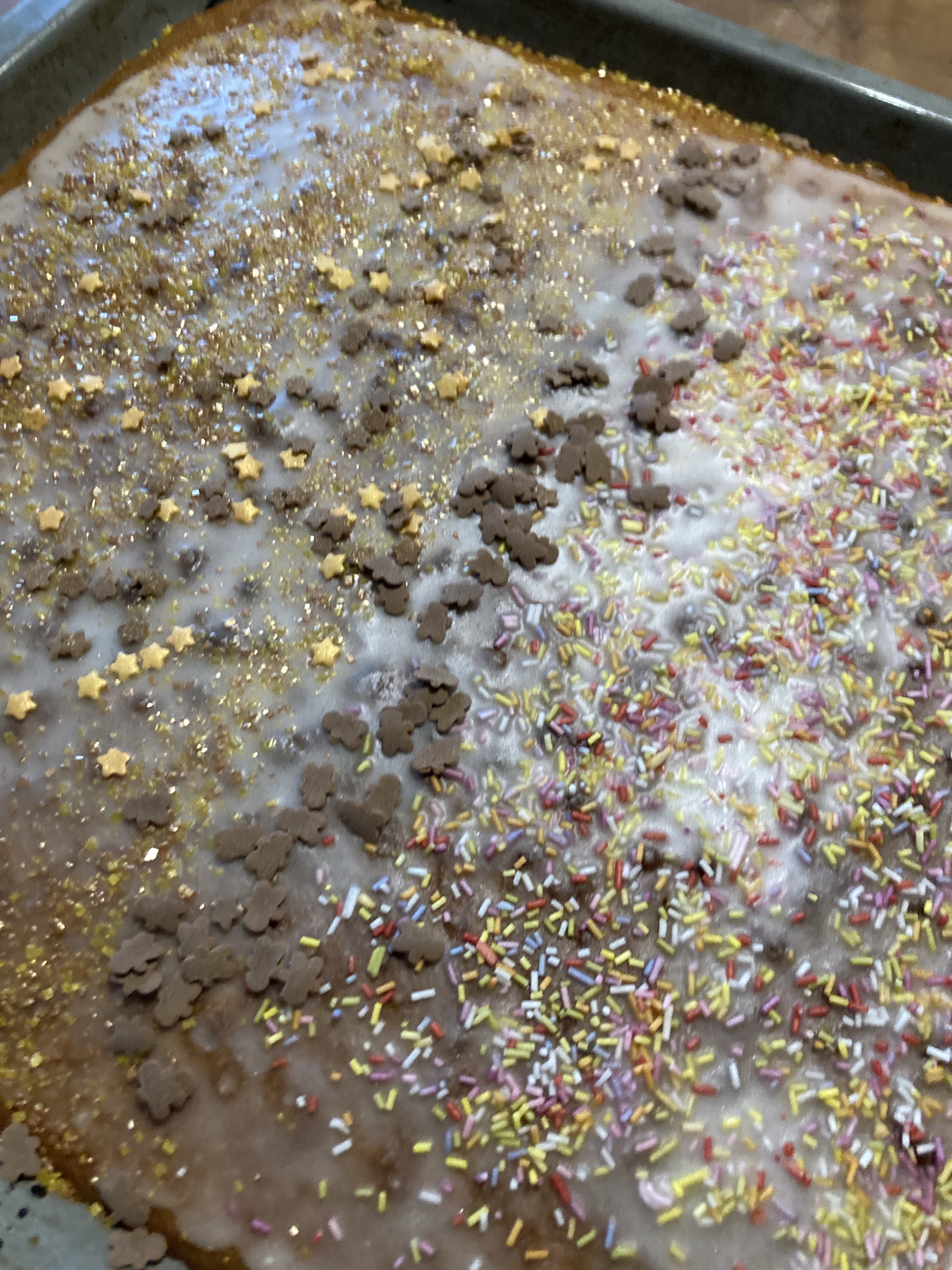 [folienstern:] „Hm, was gab’s dieses Wochenende? Kinder zurück, Kuchen, Frühstück beim neuen Florida, einen Keks wie ein Berg, letzten Weihnachtsschmuck, lauter nicht mit Absicht kaputte Sachen und eine neue Jacke!“