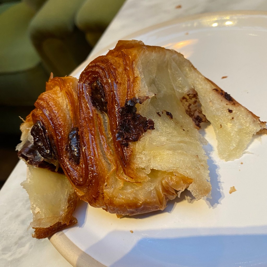 [Kellner mit einem Pain au Chocolat:] „You should also try this – it’s still warm!“