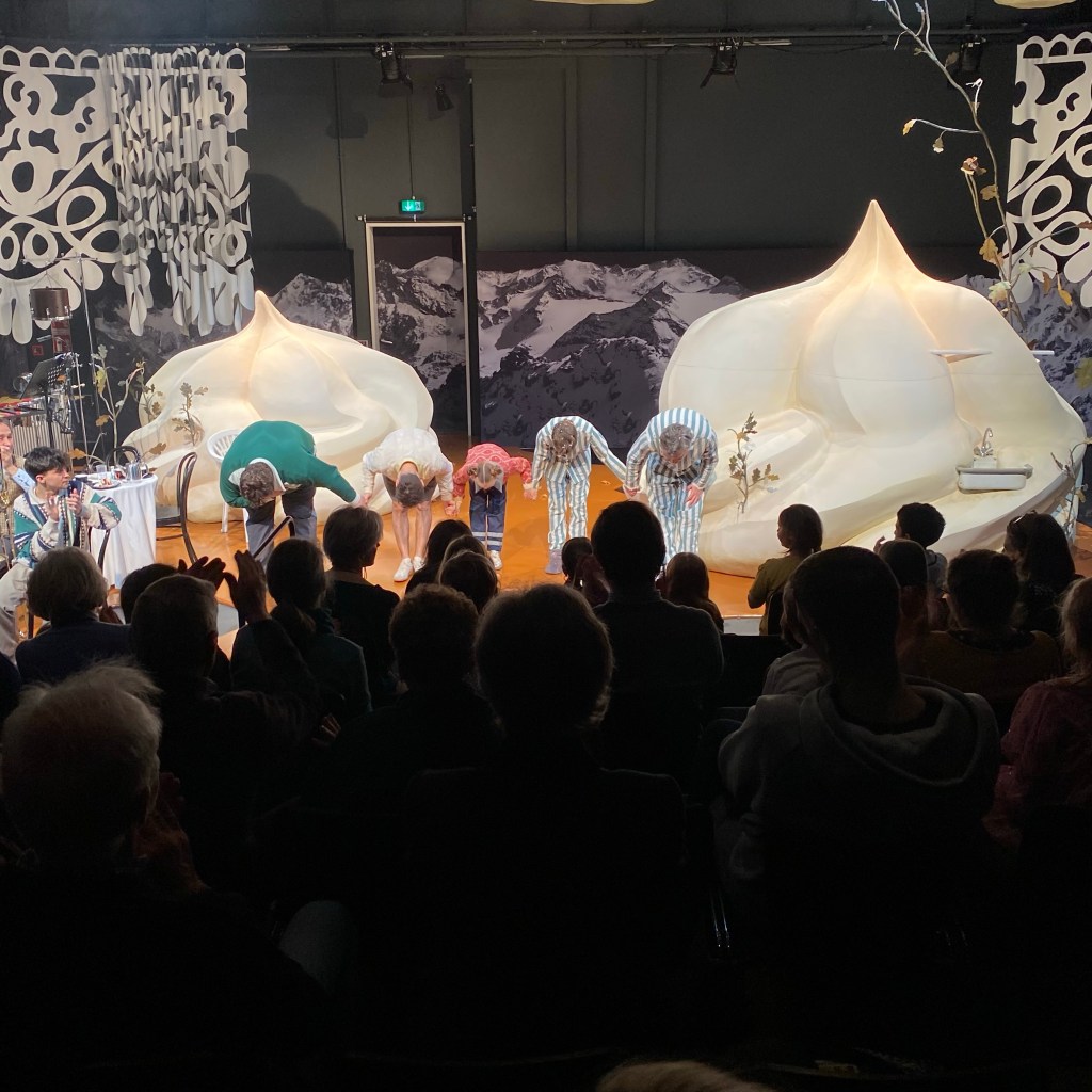 [Etwas später. Freundin:] „Das war ja wirklich ein ganz süßes Stück! Und die Musiker:innen waren auch klasse – wie die quasi mit in das Stück eingebunden waren und wie der Dirigent zwischendurch immer mal das Publium dirigiert hat!“