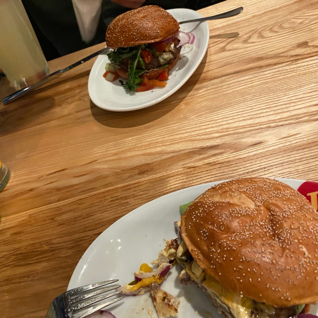 [BB:] „Klar! Wir gehen zu Jim Block, oder? Die haben ja auch vegetarische Burger!“