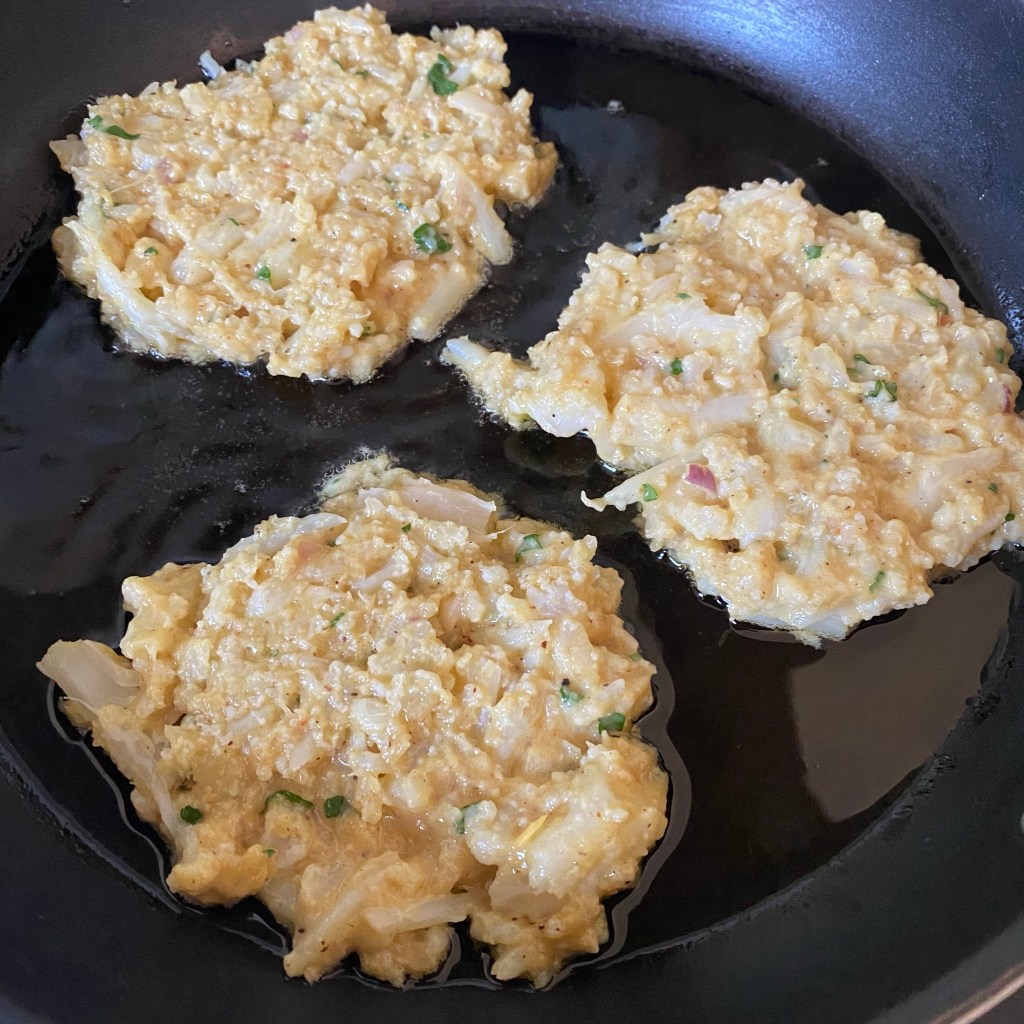 [kneteeis:] „Ich mache jetzt Blumenkohlpuffer!“