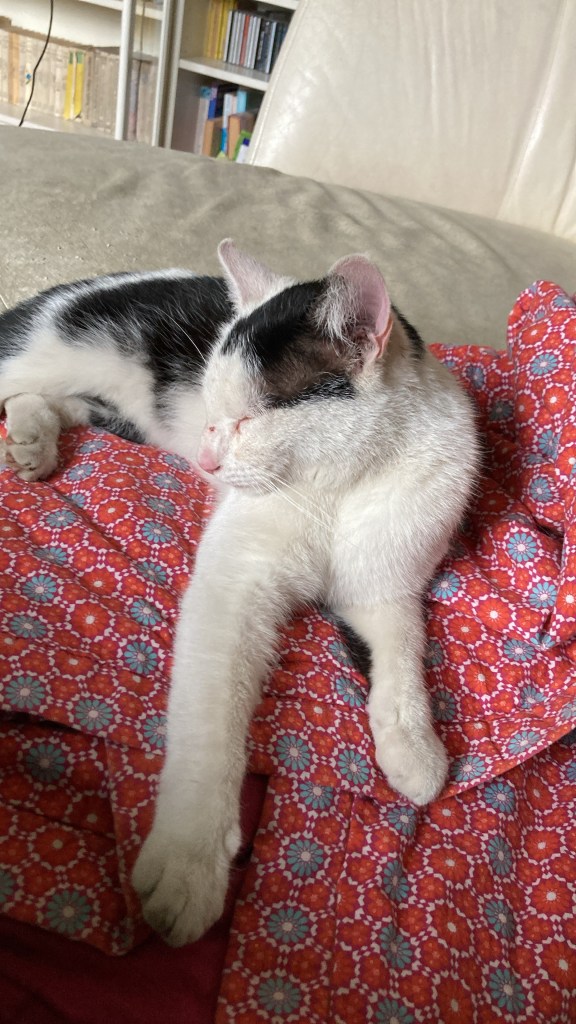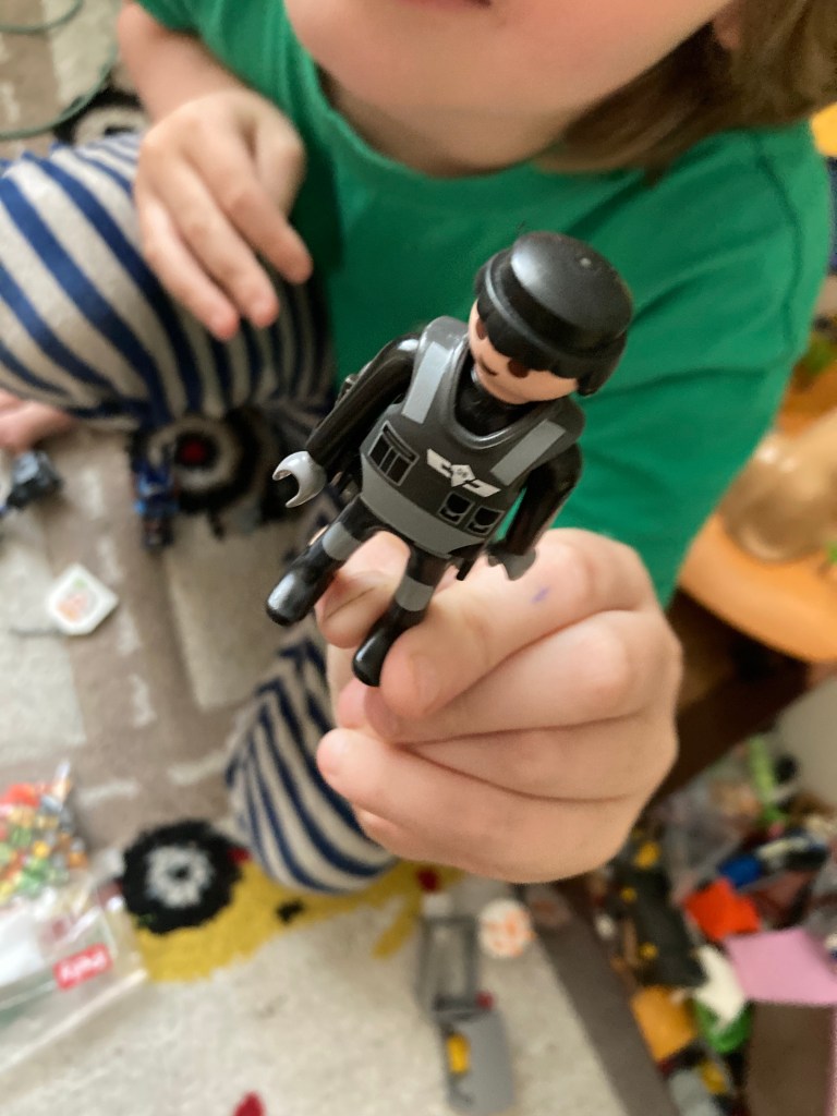 [folienstern:] „Schon wieder wenige Bilder, weil alle krank waren!! Aber immerhin ist der Kater wieder da! Und der K3 hat eine Playmofigur gebaut und seinen Hefter vervollständigt, K1 Laugenbrötchen gemacht & K2 war unterwegs. Und ich habe über Sabbath gelesen und der Pool tut auch.“