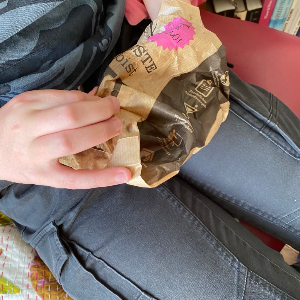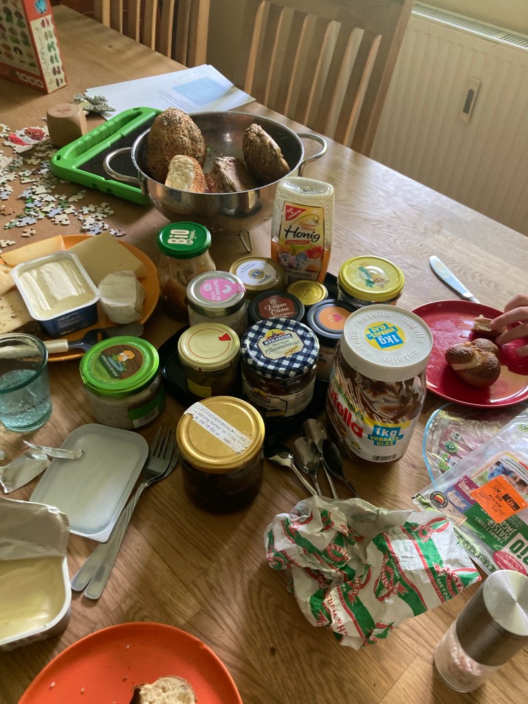 [BB:] „Mami! Der Toast ist viel zu groß für die Schokotäfelchen!“