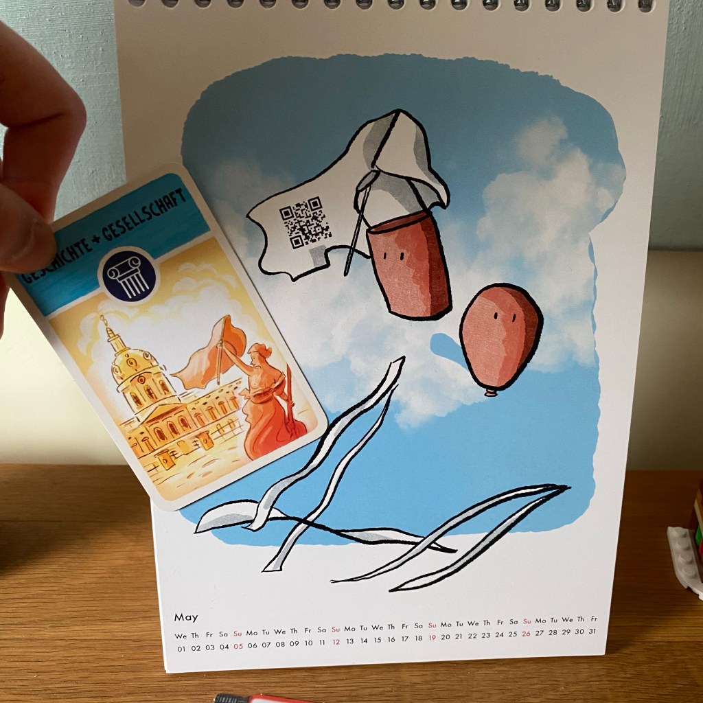 [Etwas später. BB:] „Noch eine Runde? Das ist lustig! Und guck‘ mal: Auf der Karte ist dasselbe Bild wie auf dem Mai-Blatt vom Kalender!“