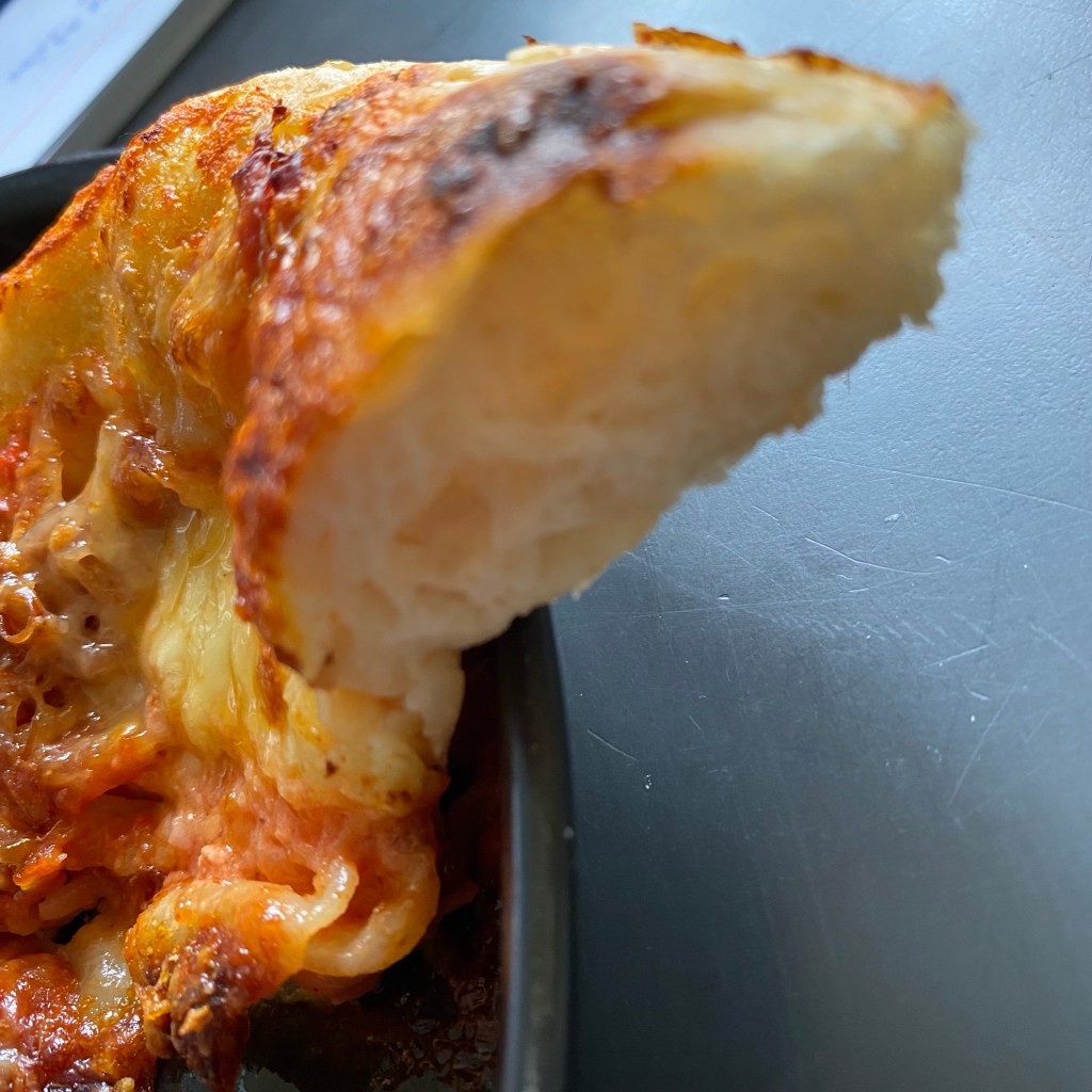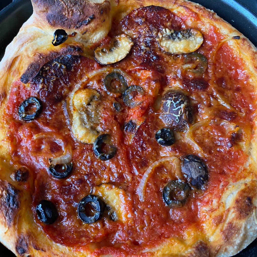 [Etwas später. BB:] „Hm, die ist lecker geworden! Den Pizzateig kannst Du ruhig häufiger machen!“