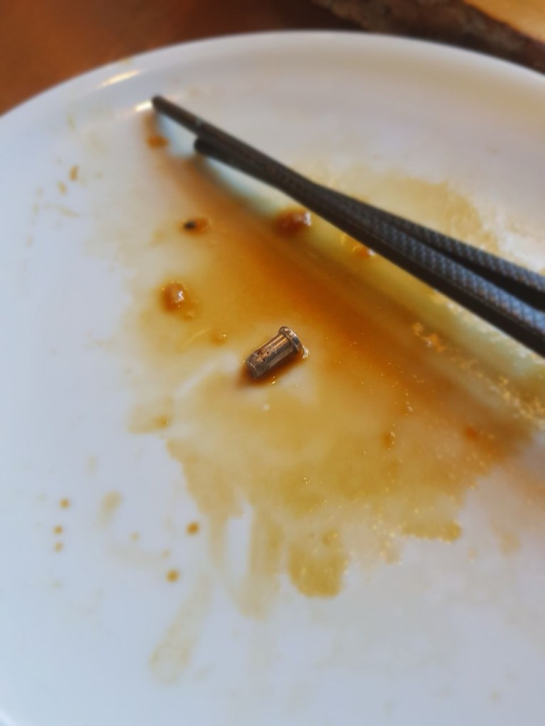 [Norddeutschland. folienstern:] „Schon wieder unterwegs. Und im Essen war eine Schraube & die Katzen haben die Fleischwurst gegessen…“