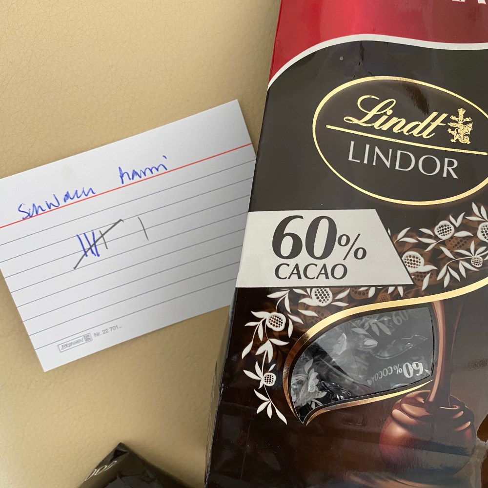 [BB:] „Oh, hast Du neue Lindt-Schokolade gekauft?“