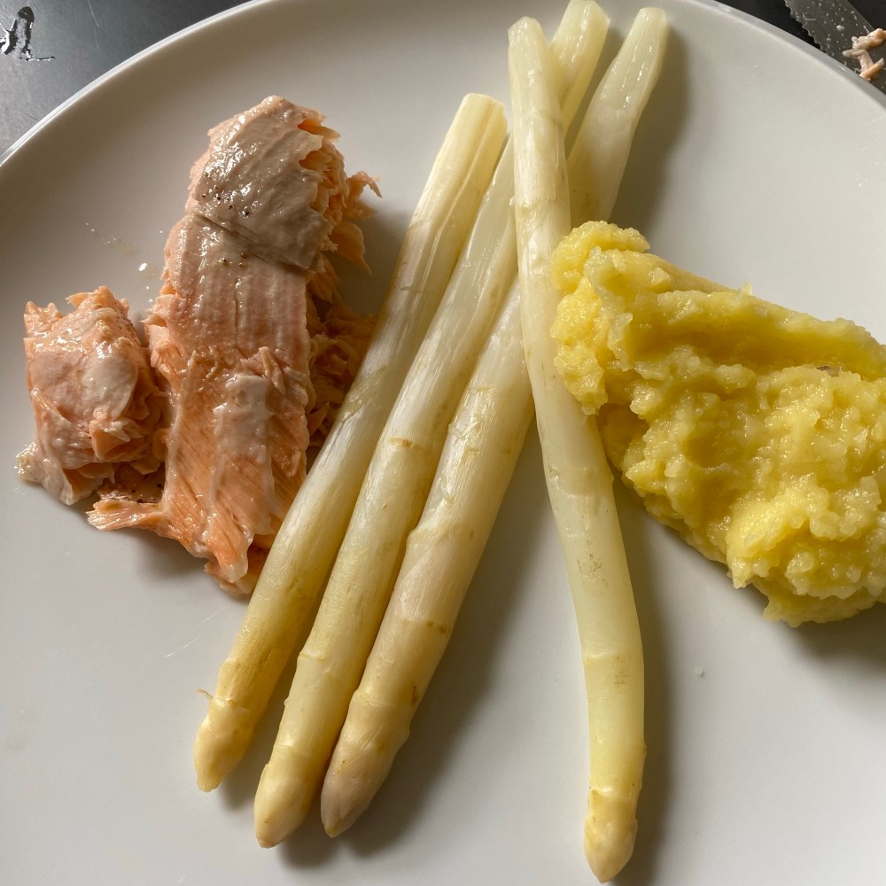 [BB:] „Ach so. Na gut. Dann esse ich eben Lachs, Spargel und komisches Kartoffelpüree…“
