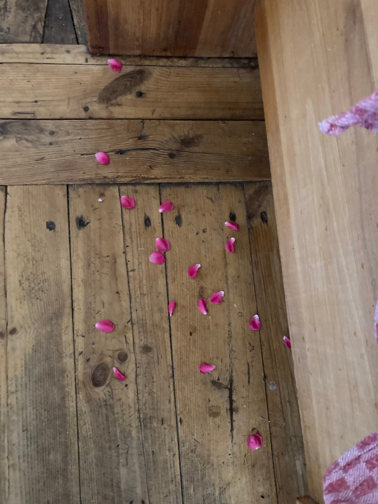 [Sonntagabend] “ Hm, dies Wochenende war nicht viel: Erstes Mähen nach Mähfreiem Mai, Schierling im Garten, Garderobe aufgeräumt & ein paar Blüten nicht mit Absicht auf dem Boden!”