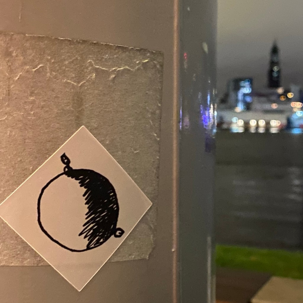 [BB:] „Ja. Und das ist offenbar auch ein prima Laternenpfahl, um Sticker anzukleben…“