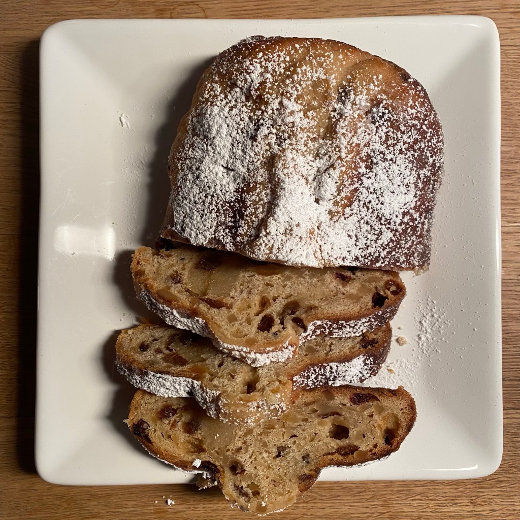 [kneteeis:] „Stellen wir jetzt den Weihnachtsbaum auf? Stollen, Kekse und die Marzipantorte, die Du machen wolltest, sind ja schon fertig!“