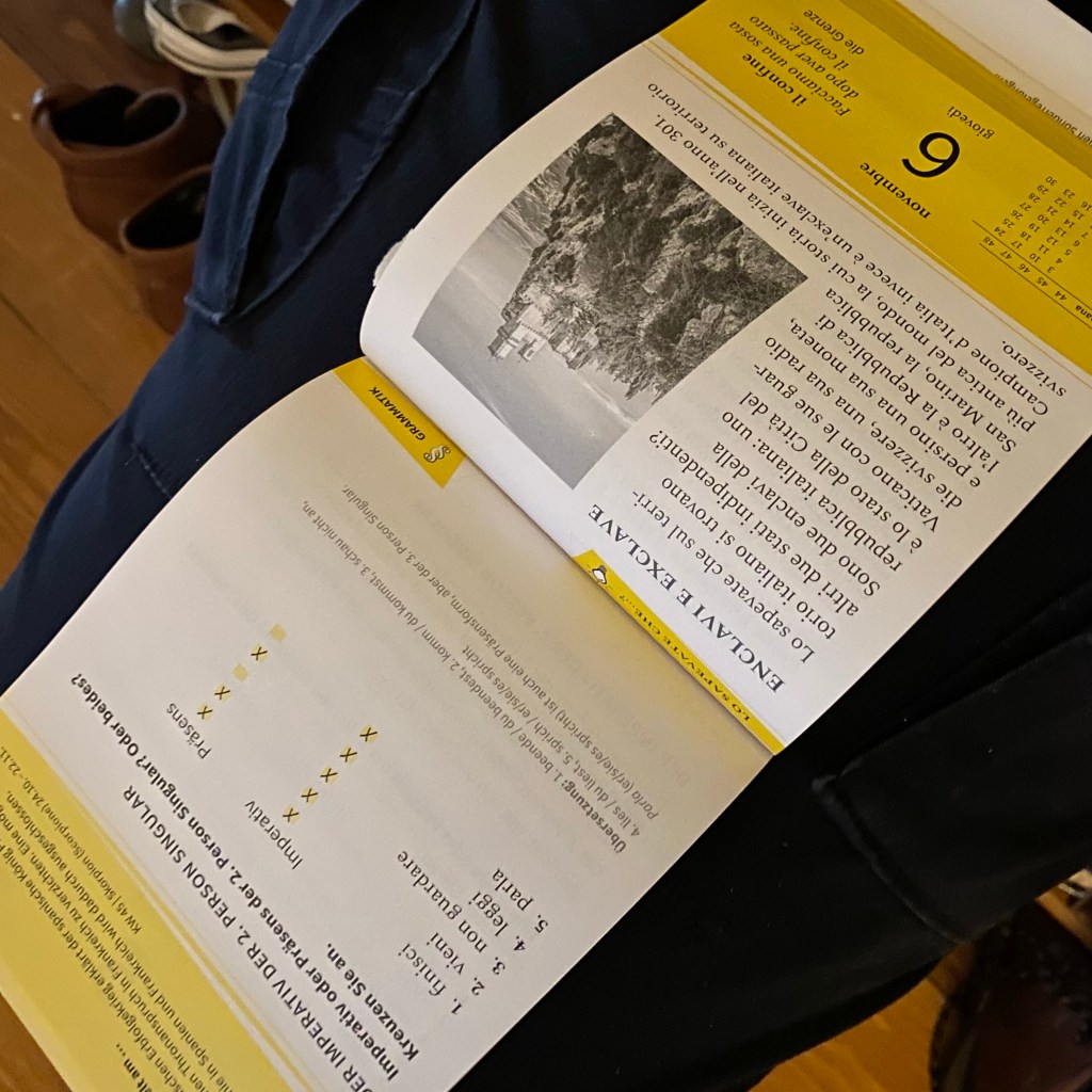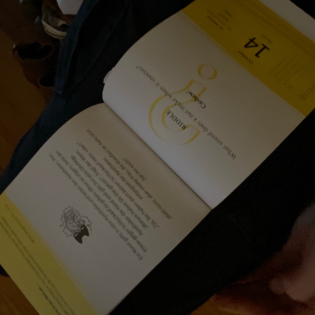 [BB:] „Guck‘ mal: In meinem englischen Witzekalender sind lateinische Rätsel!“
