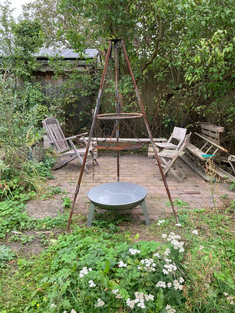 Vater: “Ich finde die Feuerschale sehr gut!; die funktioniert gut.”