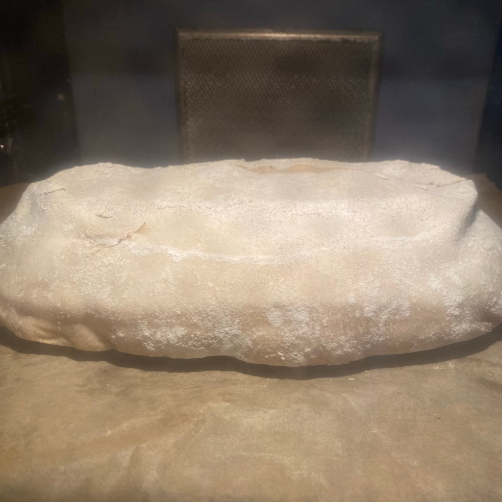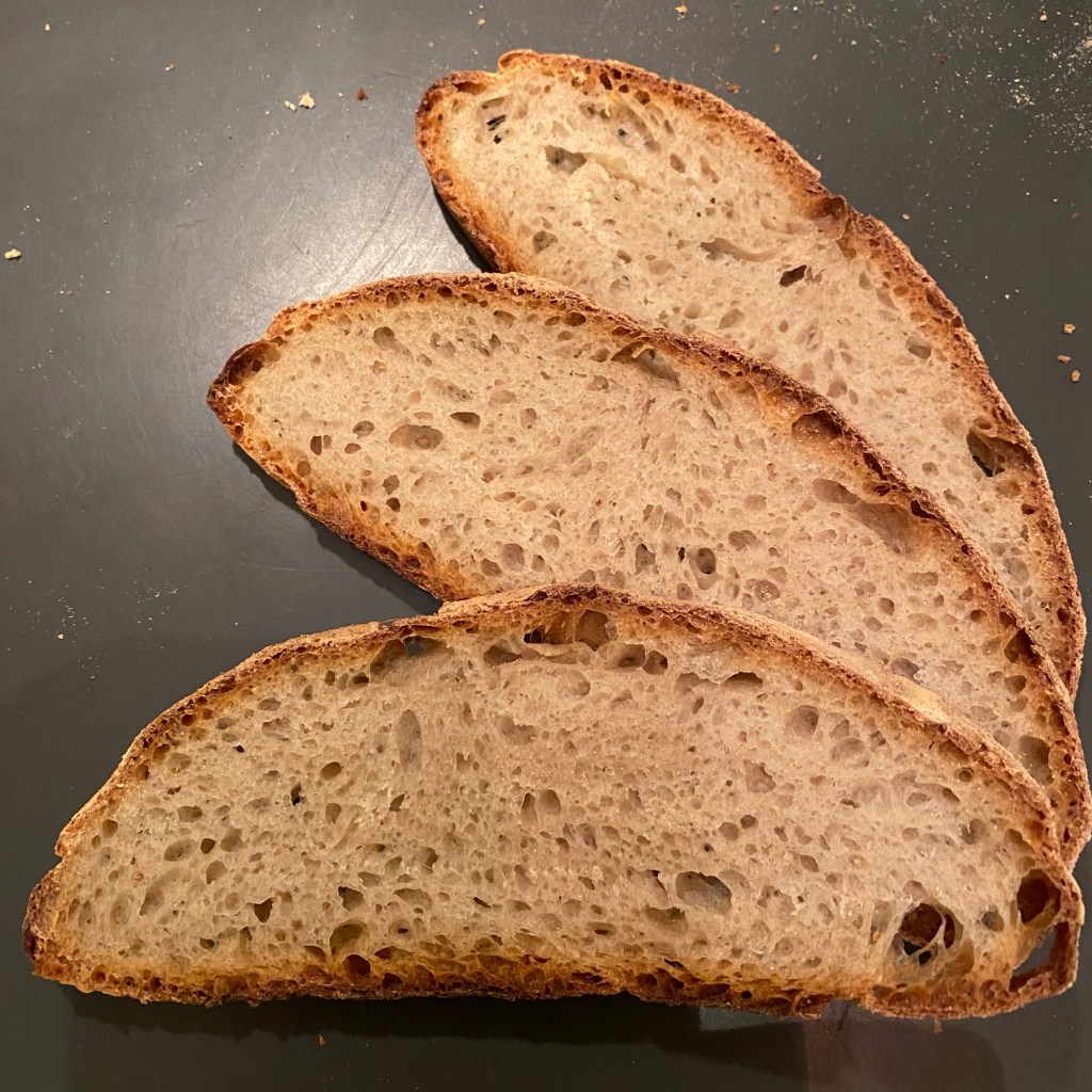 [Deutlich später. kneteeis:] „Verflixt. Über die ganzen Termine ist mir die Gare total aus dem Ruder gelaufen. Das war nicht mit Absicht. Das Brot sieht jetzt von außen eher nicht so aus wie geplant…“