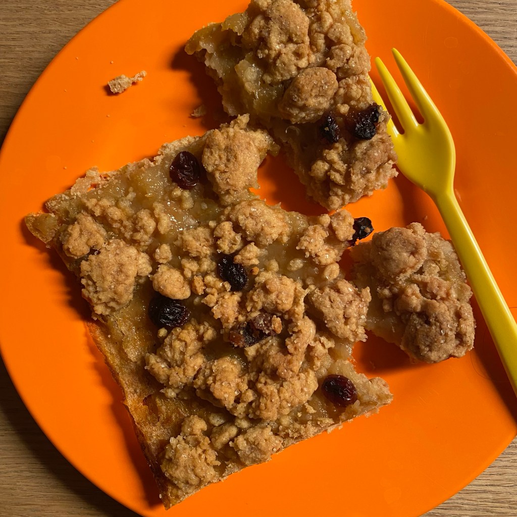 [BB:] „Alles klar. Das klingt lecker. Aber der Apfelmus-Streuselkuchen neulich war auch gut!“