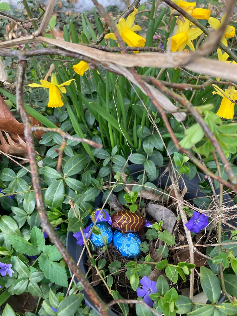 [BB:] „Irgendwie war auch jemand hier, um Ostereier zu verstecken. Ich glaube, es war dieses Jahr nicht der Osterhase, sondern ein Känguru mit roten Boxhandschuhen. Deshalb musste ich etwas helfen. Aber Du kannst suchen!“