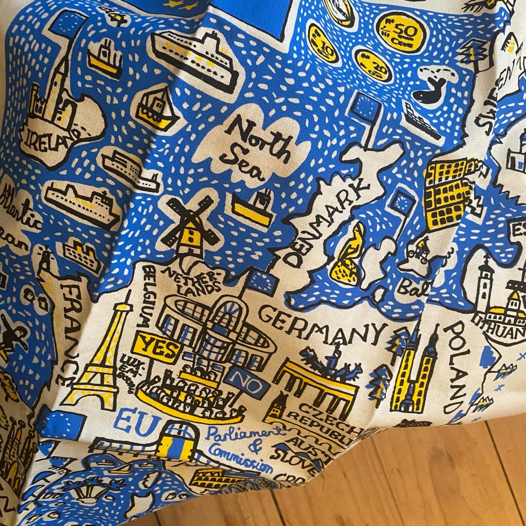 [kneteeis:] „A propos Mitbringsel: Weißt Du, was mir aufgefallen ist? Auf dem EU-Geschirrtuch aus Brüssel fehlt tatsächlich Großbritannien. Da schwimmt Irland ganz alleine in der Nordsee herum…“