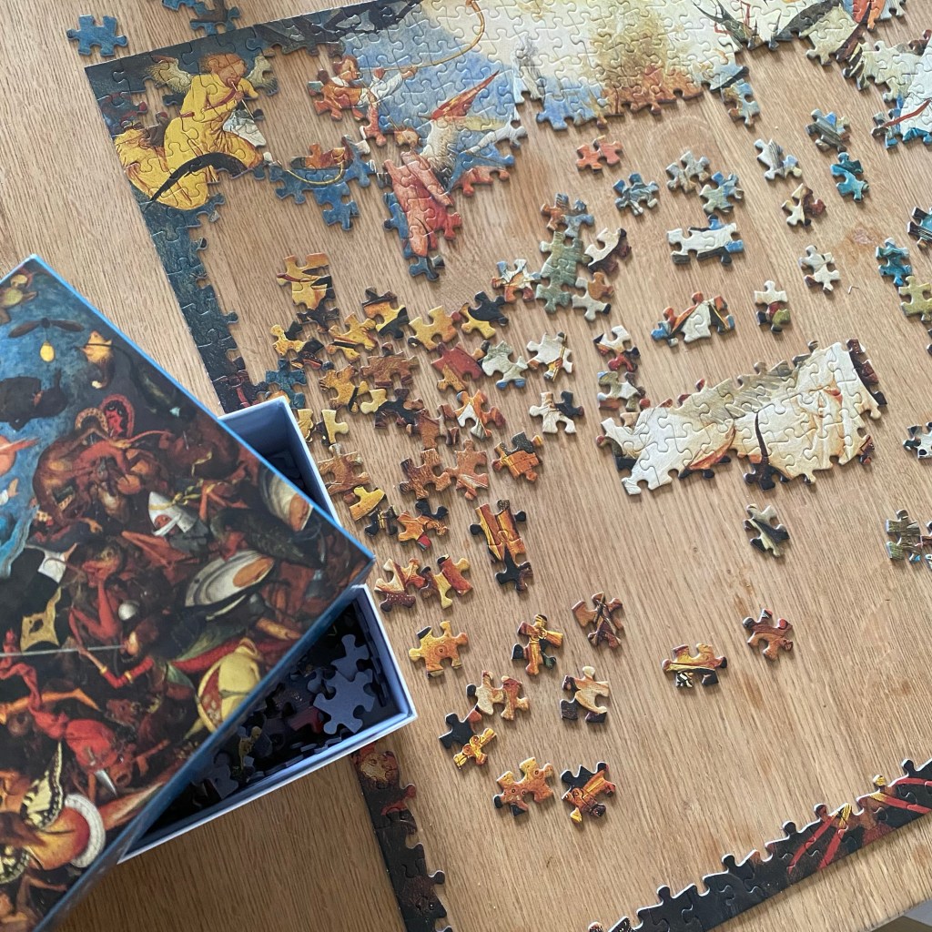 [kneteeis:] „So, der große Junge ist auf Probenwochenende. Da kann ich in Ruhe Kaffee trinken und so viel Avocadotoast essen, wie ich möchte! Und dann fange ich noch das Puzzle mit dem Fall der Engel an, das wir aus Brüssel mitgebracht haben.“